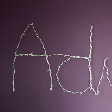 Dann gehts los. Ihr biegt den Draht - Buchstabe für Buchstabe - mit der Zange in Form. Achtet darauf, dass die Buchstaben alle miteinander verbunden sind. Ich habe NUR das Ende abgeknipst, sonst nichts. Wo es nicht anders möglich war, habe ich Wege doppelt gemacht und miteinander verdreht.