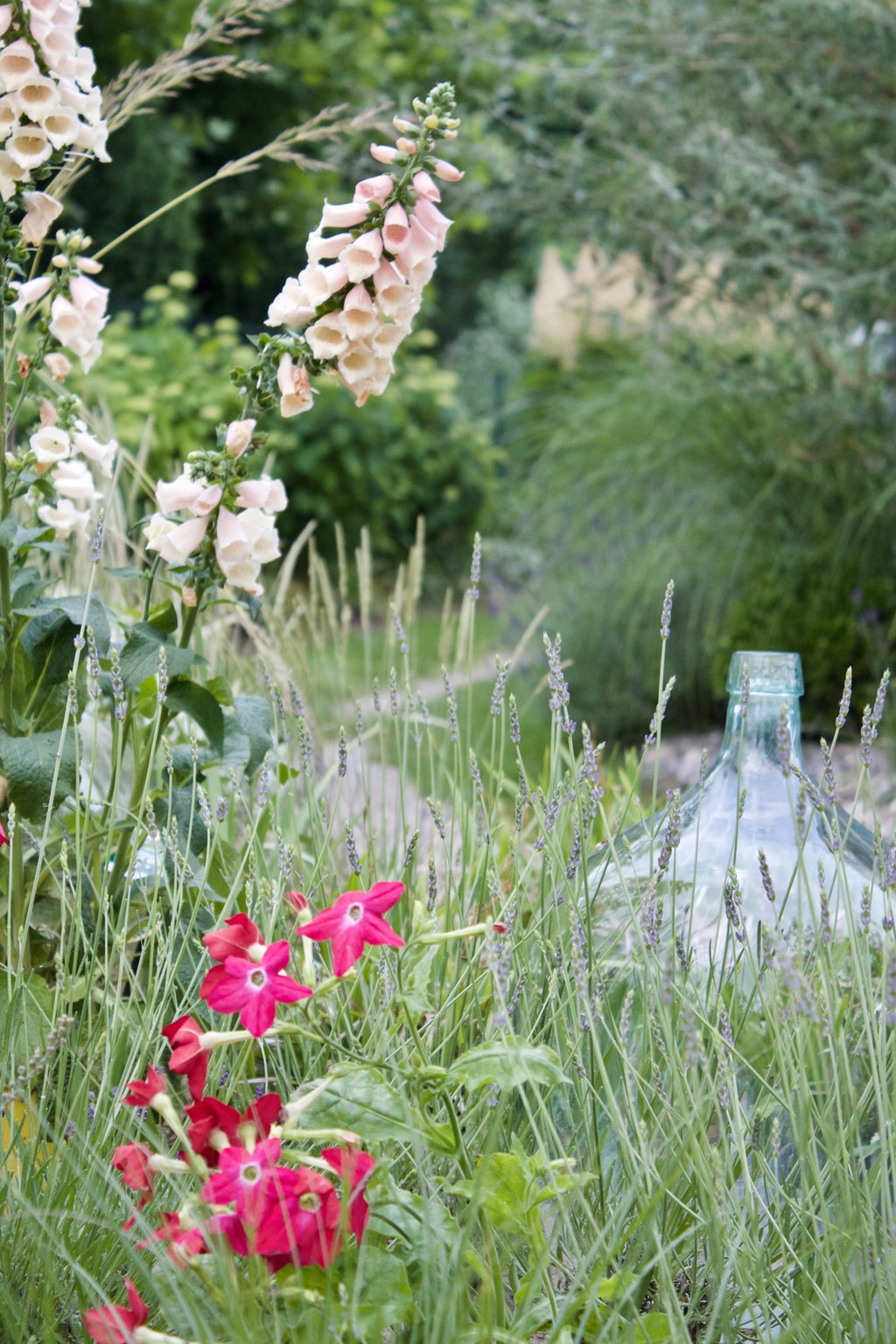 Auch hier habe ich den rostfarbenen Fingerhut untergbracht und zwischen den jungen Lavendel etwas Ziertabak deponiert, der leider nur einjährig unterwegs ist, aber als wunderbarer Farbklecks fungiert.