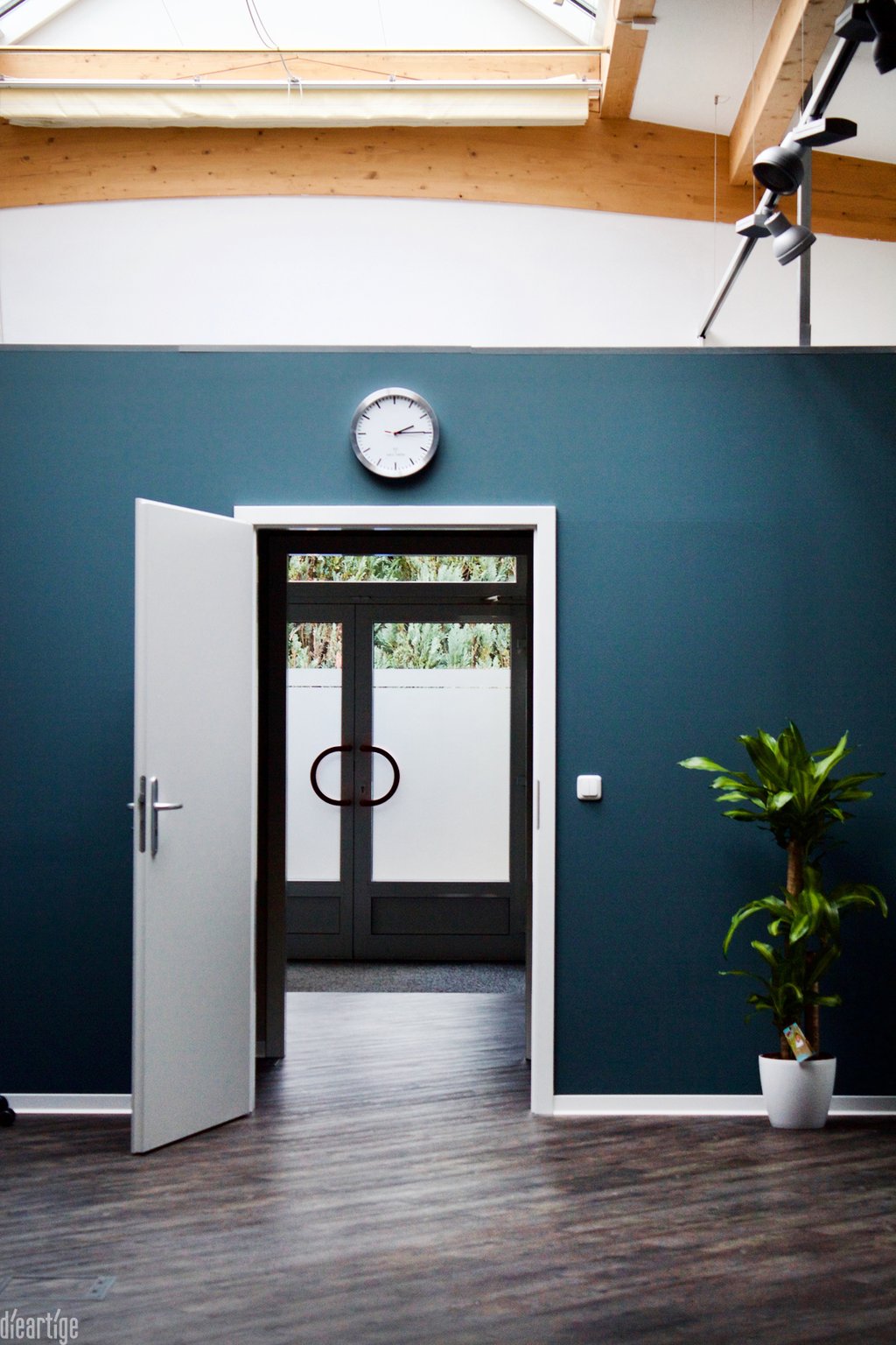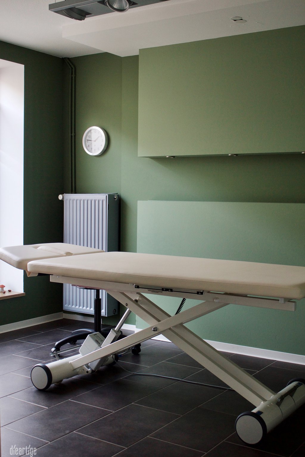 Der Flur bzw. die Flure sowie der Wartebereich sind in dem sehr hellen Blassgrün "Mizzle" gehalten. Das suggeriert leichte Frische, Freundlichkeit und offene Weite.