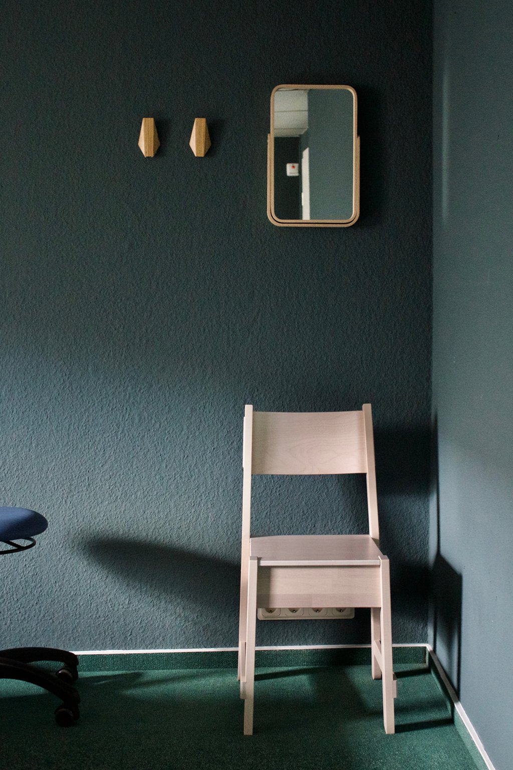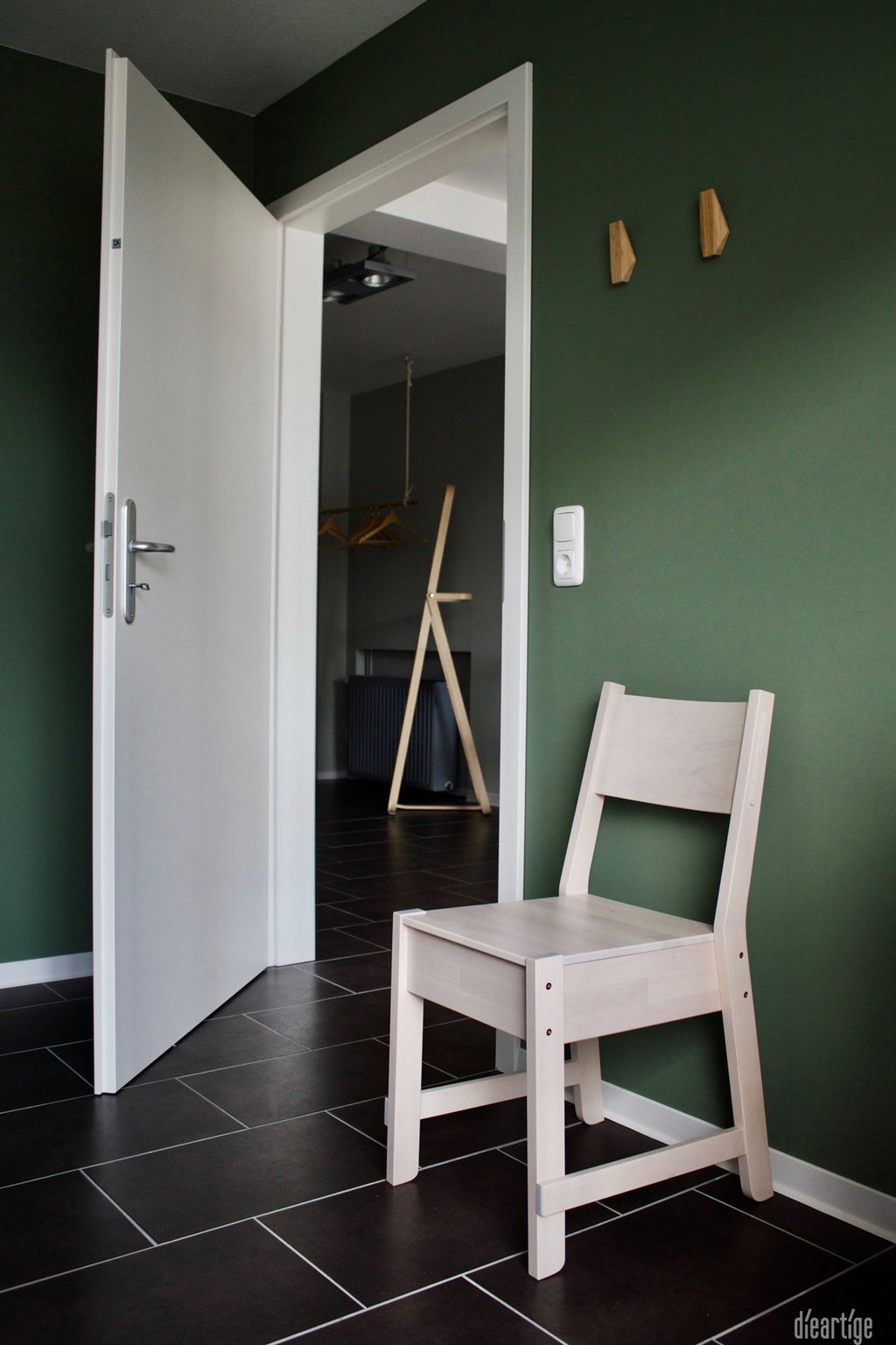 Lediglich die Möbelierung, wie Regal, Stuhl, Uhr, Spiegel und Haken sind identisch. Somit erhält jeder Raum eine andere, den Gegebenheiten angepaßte, Stimmung.